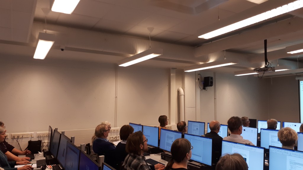 Digisiivet 55+ -koulutuskokonaisuuden ensimmäinen osa JKO:lla keräsi mukavasti osallistujia. Ryhmässä oli monenlaisia tavoitteita ja lähtökohtia digiasioiden opiskelulle. Aluksi käsittelimme tietoturva-asioita, ja melko ison osan ajasta veikin kirjautuminen ja kaksivaiheinen tunnistautuminen käytössämme olleisiin ympäristöihin. Tästä syystä muulle sisällölle jäi hieman suunniteltua vähemmän aikaa. Ehkä opettajana onkin syytä ajatella, että nykyisessä tietoturvatilanteessa monimutkaistuvat kirjautumisrutiinit ovatkin nyt juuri sitä ”varsinaista asiaa”, eivät vain opetuksen alkuun sijoittuva välttämättömyys.